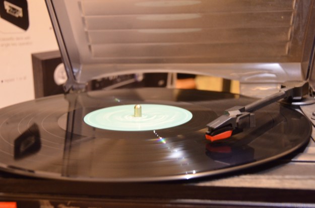 Here we have a record spinning on a turntable. By focusing on the rod in the center, the motion of the vinyl record is slowed (almost frozen). The grooves don’t appear to be moving, and it appears as if time itself has decided to stand completely still.