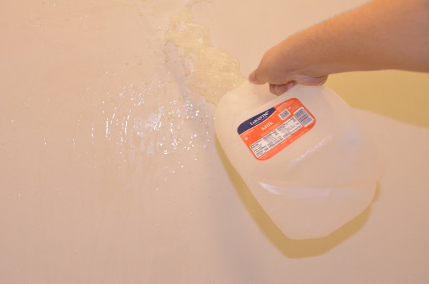 Here’s another example of frozen motion. This image was created by filling up an empty milk jug only part of the ways up, and then sloshing the jug’s contents into the wall of a shower. Captured at just the right time, the camera was able to produce an effect that makes the water appear frozen as it splashes out of the plastic milk jug.